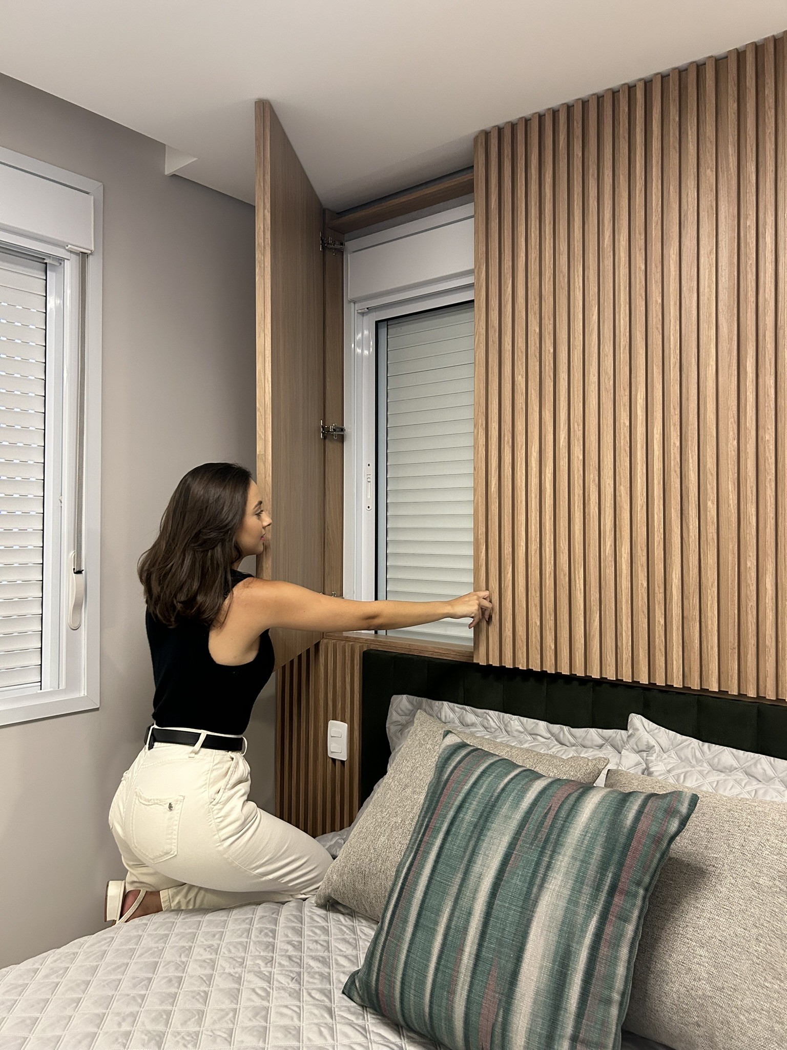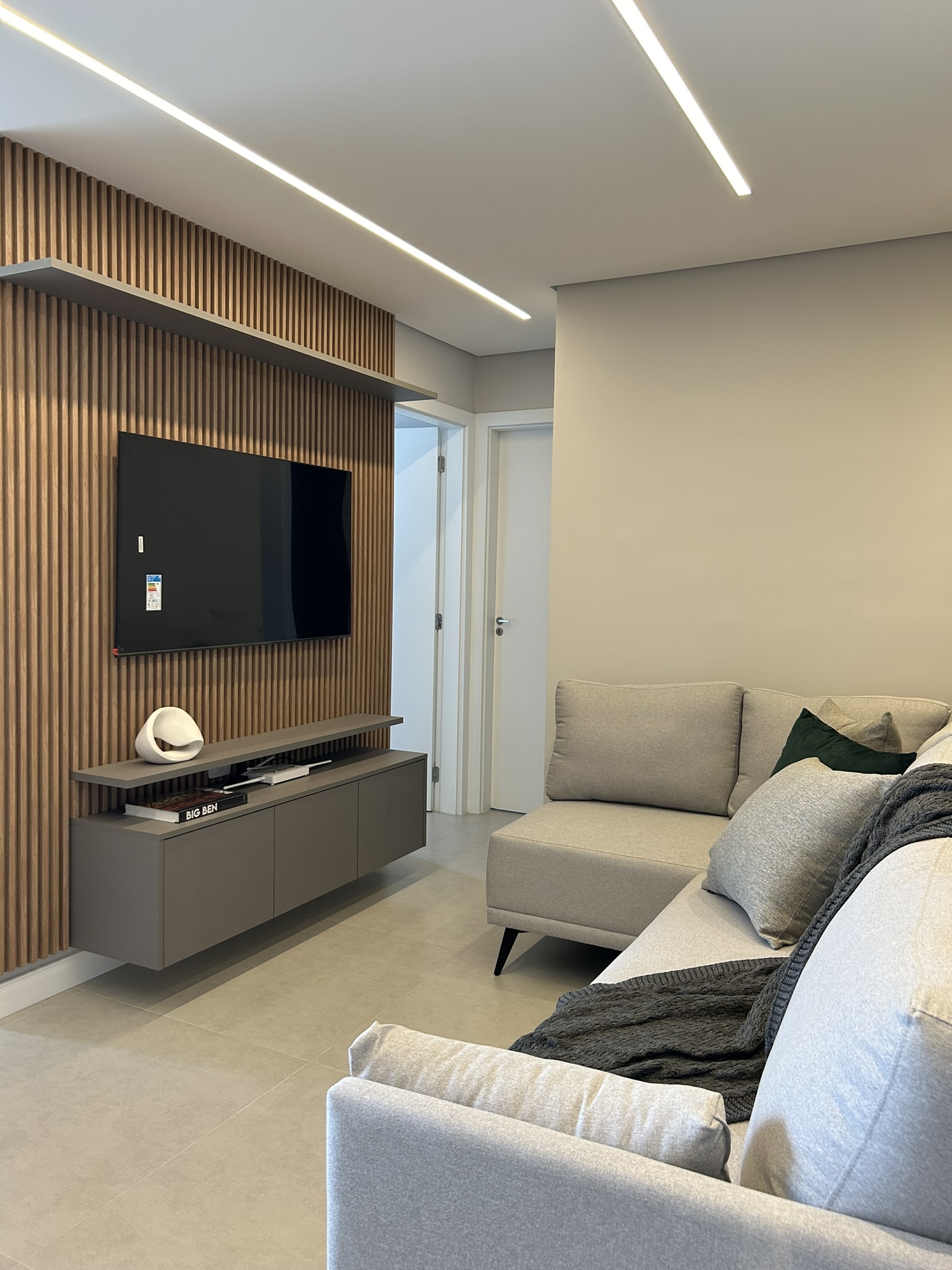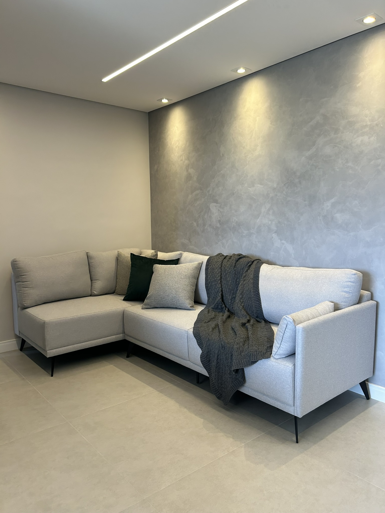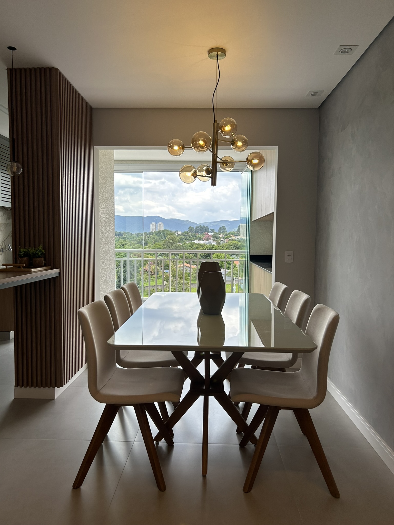 Este projeto é uma verdadeira celebração da elegância e do aconchego, onde cada detalhe foi cuidadosamente pensado para refletir a personalidade dos clientes. O revestimento marmorizado, que se destaca na cozinha, confere sofisticação e imponência ao ambiente, enquanto a marcenaria verde, longe do convencional, traz um toque moderno e único. O uso de elementos amadeirados cria uma atmosfera acolhedora e natural, proporcionando conforto em todos os cantos do lar. Na suíte, a personalidade dos clientes é sutilmente estampada em um altar religioso, que se integra ao ambiente com respeito e harmonia, criando um espaço de reflexão e tranquilidade. O equilíbrio entre materiais, cores e texturas torna este projeto não apenas bonito, mas também cheio de significado, criando um espaço onde cada elemento tem uma história e propósito